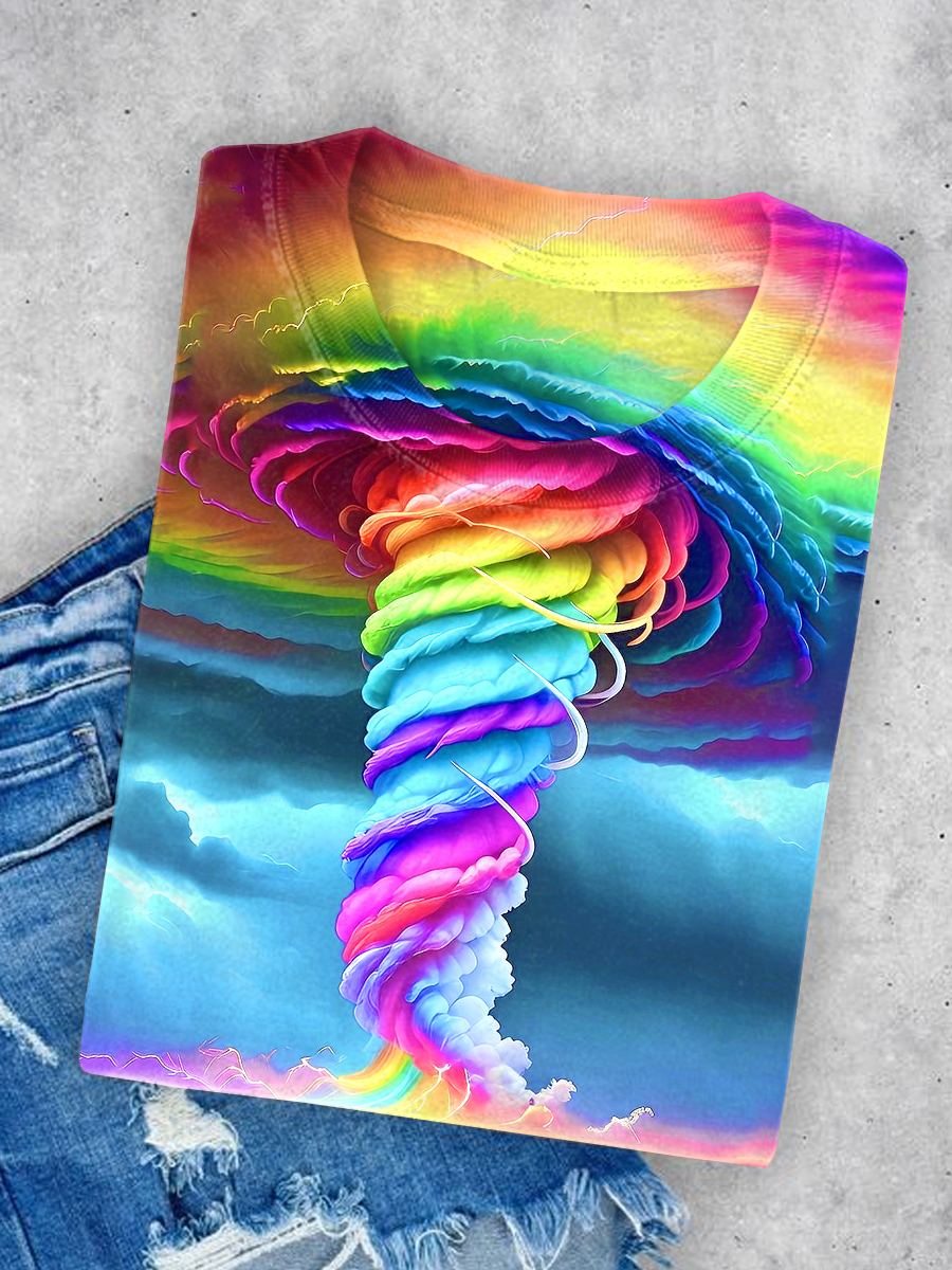 Rainbow Gradient Funny Cat Art Print Casual Short Sleeve T-Shirt