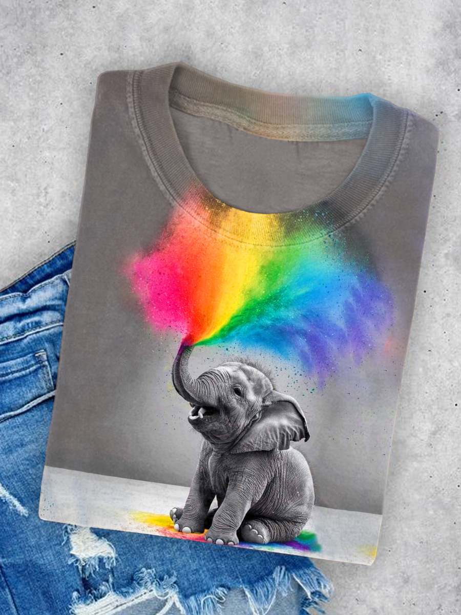 LGBT Rainbow Pride Elephant Print Casual Short Sleeve T-Shirt
