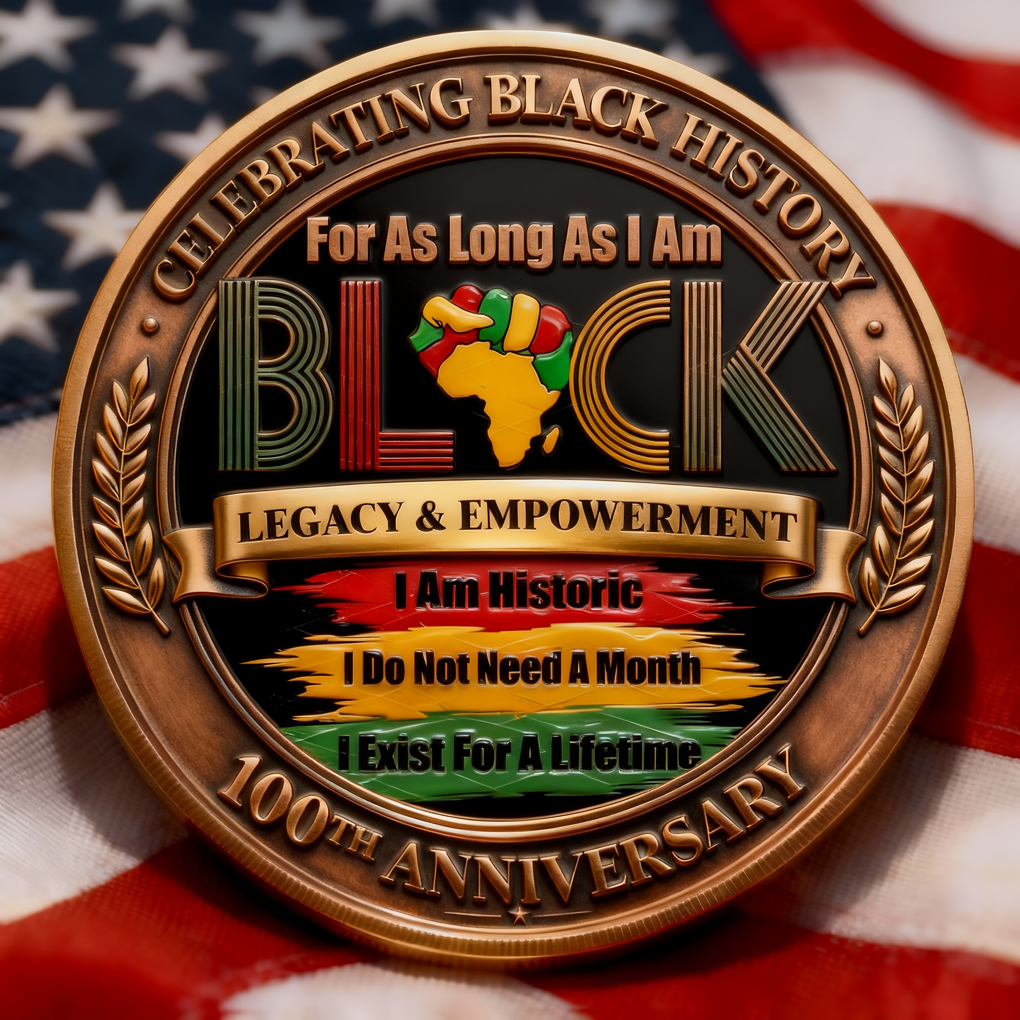 This powerful double-sided, high-relief commemorative coin honors 100 years of Black history, culture, and contribution. Designed to celebrate identity beyond a single month, the coin stands as a bold declaration of pride, unity, and lifelong heritage.